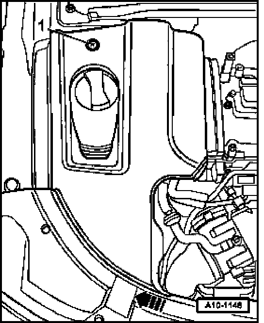- Remove bolt -1- and remove reservoir cover (arrow).