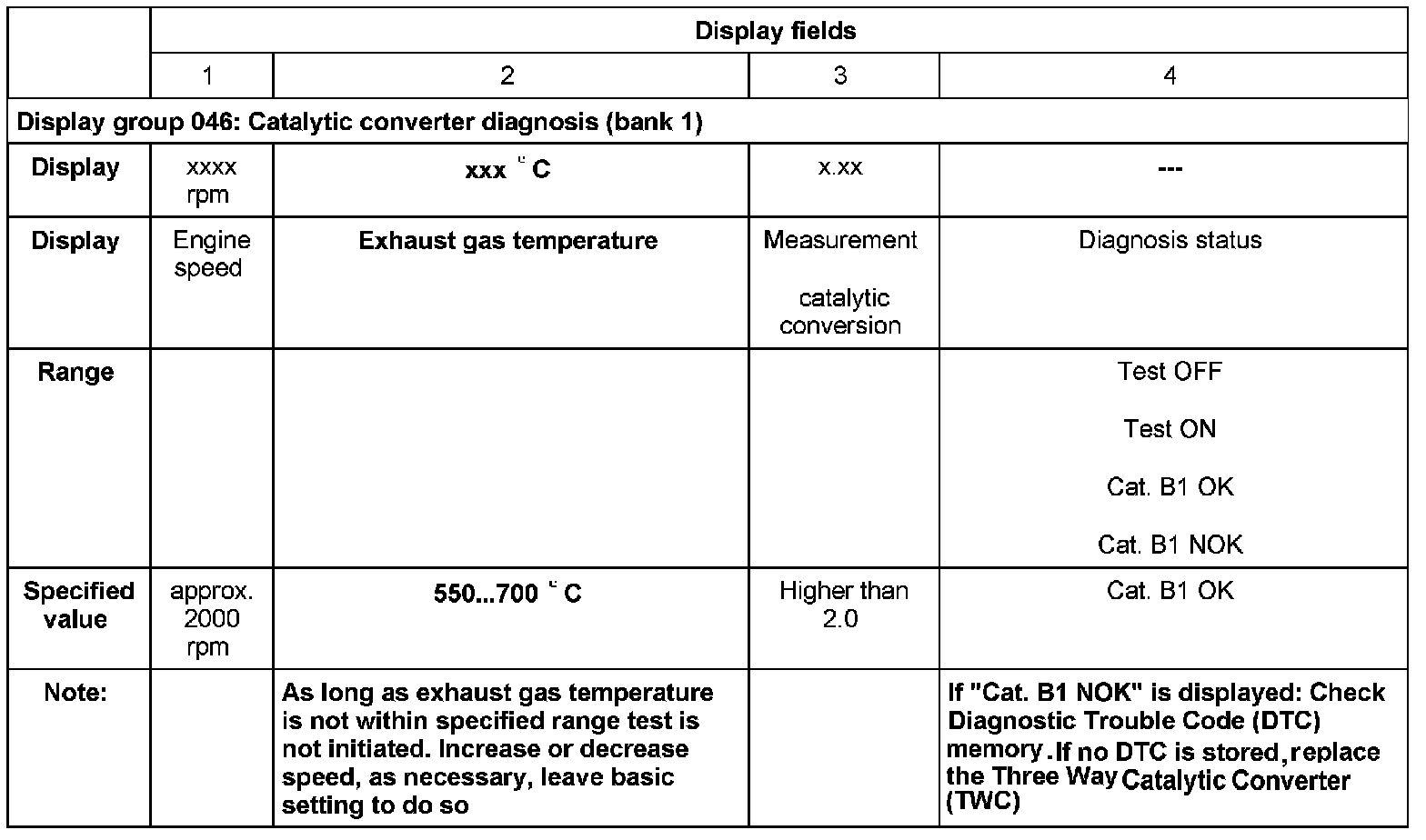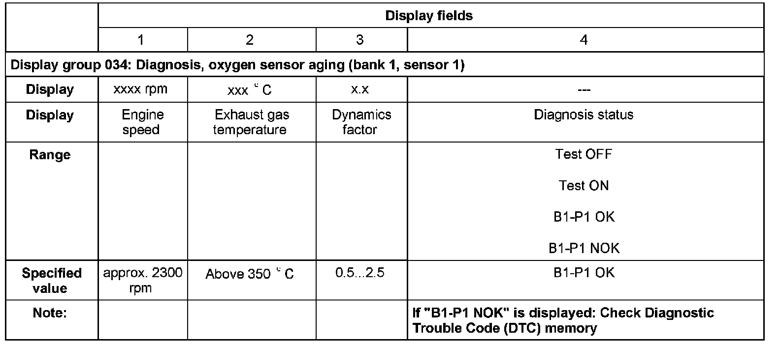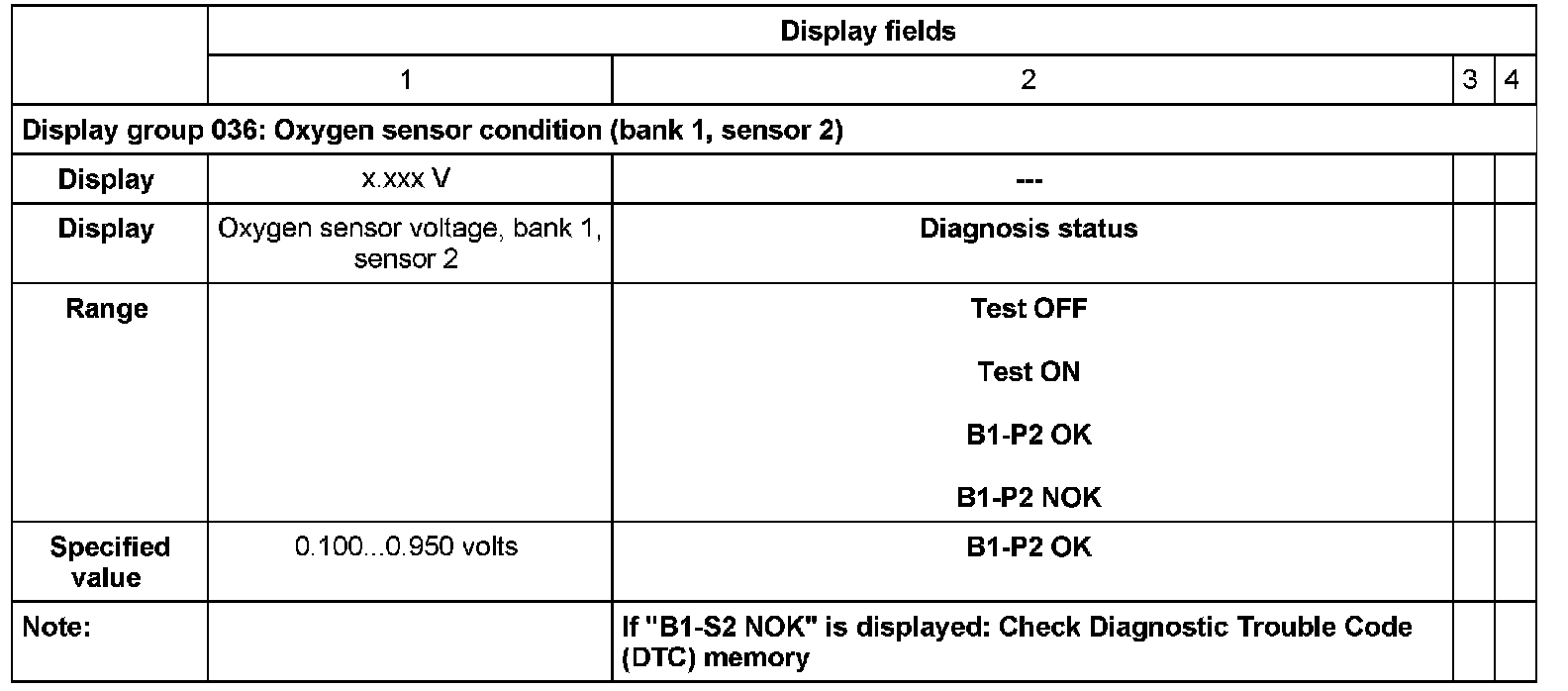 - If during the test the value in display field 4 changes from "Test ON" to "Test OFF" and "Breakage"(for example, when leaving the rpm range) and it does not return to "Test ON", turn the ignition off and back on; restart the "Secondary Air Injection (AIR) system" diagnosis.