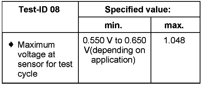The values of the individual oxygen sensor test results must reach the specified value or must be within the min.- and max.- limits.