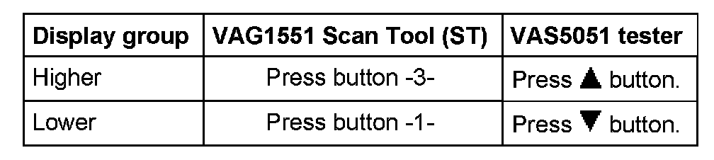Display on VAS 5051 for display group 001-255: