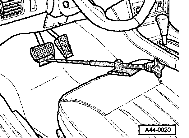 - Depress brake pedal and keep down using brake pedal depressor VAG1 869/2.