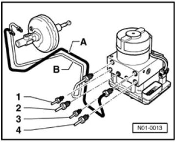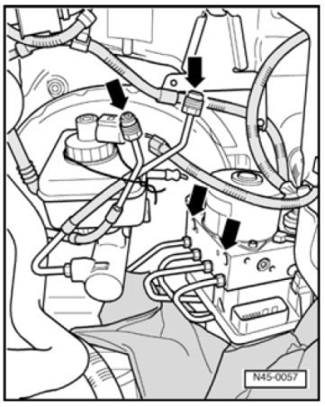 - If the sealing plugs are removed too soon from the hydraulic unit, brake fluid may escape; it may no longer be possible to fill and bleed the unit properly.