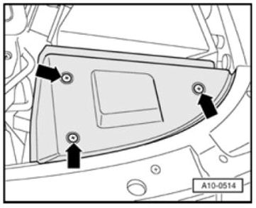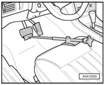 - Insert brake pedal depressor VAG 1869/2 between brake pedal and driver's seat. Depress the brake pedal by at least 60 mm.