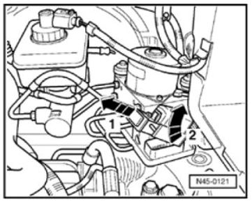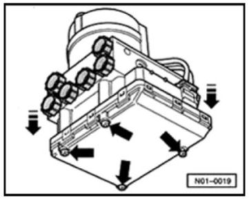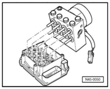 - Protect connector housing of control module against escaping brake fluid. Otherwise corroding contacts can cause a breakdown of the system.