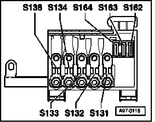 - Check wiring from Battery + (30) through fuses S134 and S10 to Motronic Engine Control Module (ECM) Power Supply Relay -J271- (under cover on left bulkhead).