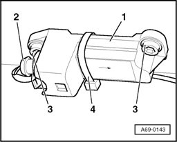 - Unplug connector - 2 - for lateral acceleration sensor - 1 -.