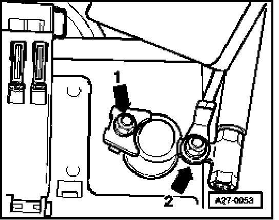 - The tightening torque for the battery clamps -arrow 1- is 6 Nm.