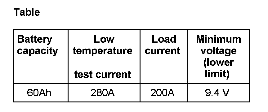 - Because of the high current load, the battery voltage will drop during this test (ohmic resistance). If a battery is in good condition, the voltage will only drop as far as the minimum voltage quoted, which varies according to the battery capacity and the low-temperature test current. The low-temperature test current is an indication of the battery's starting power in winter. Batteries with a high low-temperature test current are specially important for vehicles with high compression engines.