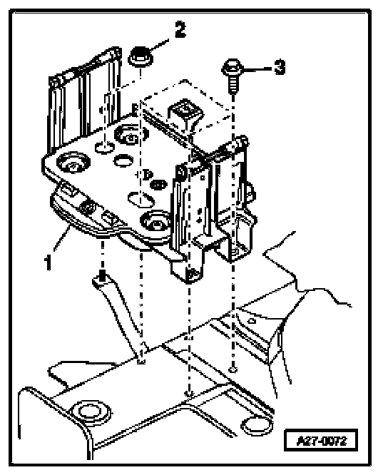 - Remove combi-bolts -1- and -2-. Tightening torque: 65 Nm