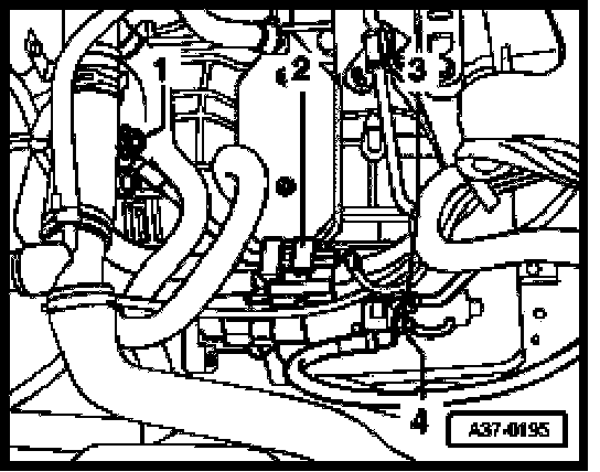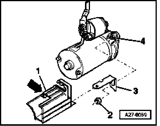 - Remove nut -2- and detach metal bracket -3- from starter securing bolt -4-.