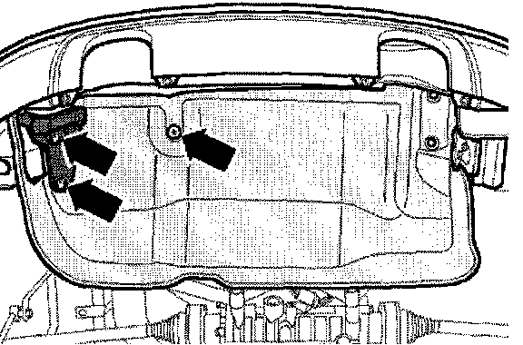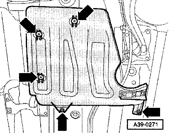 - Remove cover panel for fuel tank (at rear right) (arrows).