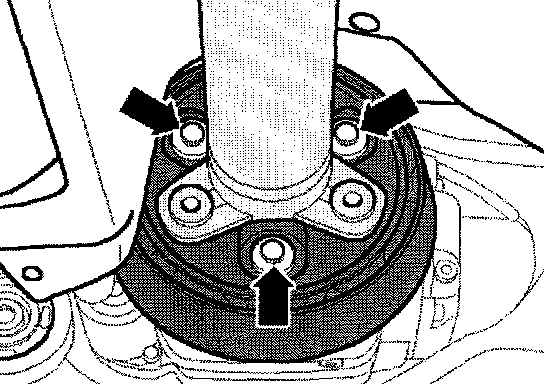 - Remove bolts securing final drive to front mounting bracket (arrows).