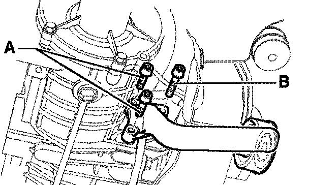 - Remove bolts securing final drive rear mounting bracket on left and right - arrow B -