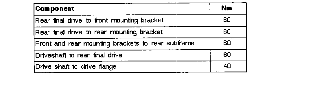 - Observe different sized securing bolts for final drive front mounting bracket.