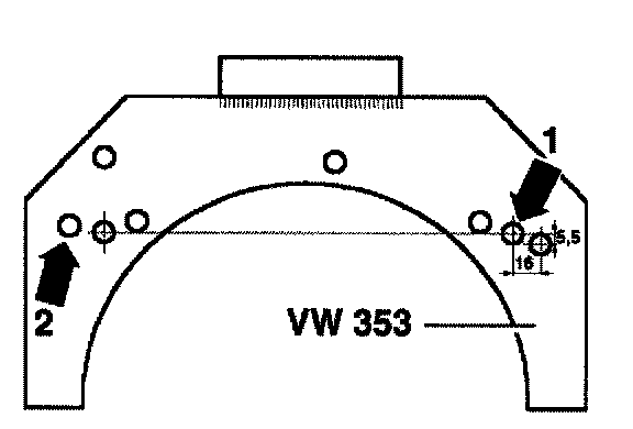 - Drill a 15 mm diameter hole (arrow 1) in transmission holder.