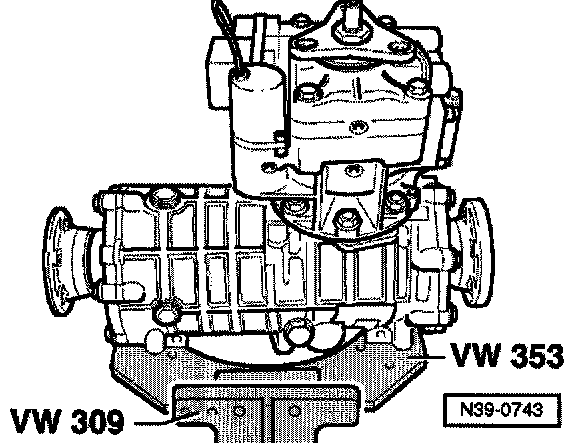 Transmission holder VW 353 must be modified to secure the rear final drive to the repair stand.