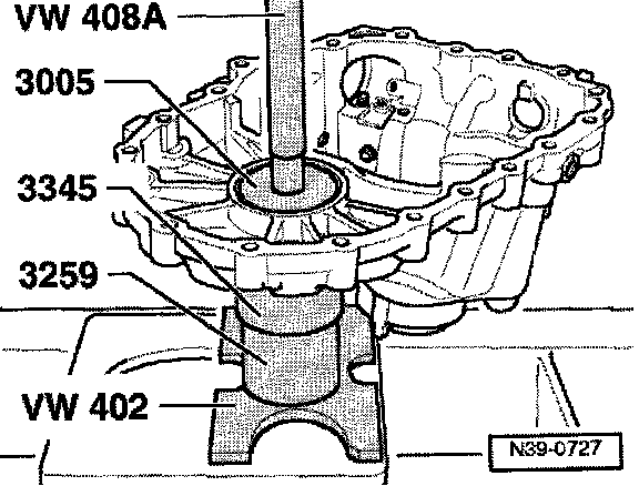 - Press in outer race again and tighten transmission housing to tightening torque.