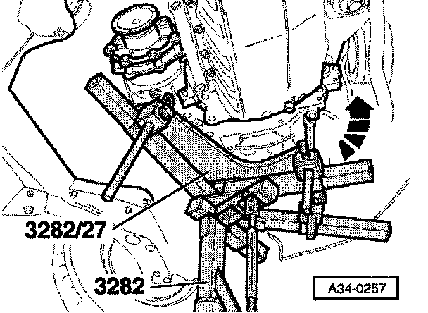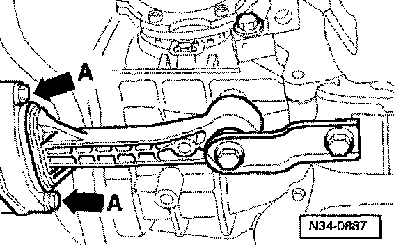 - Bolt sway brace onto aggregate carrier (arrows A) (20 Nm - 90°).