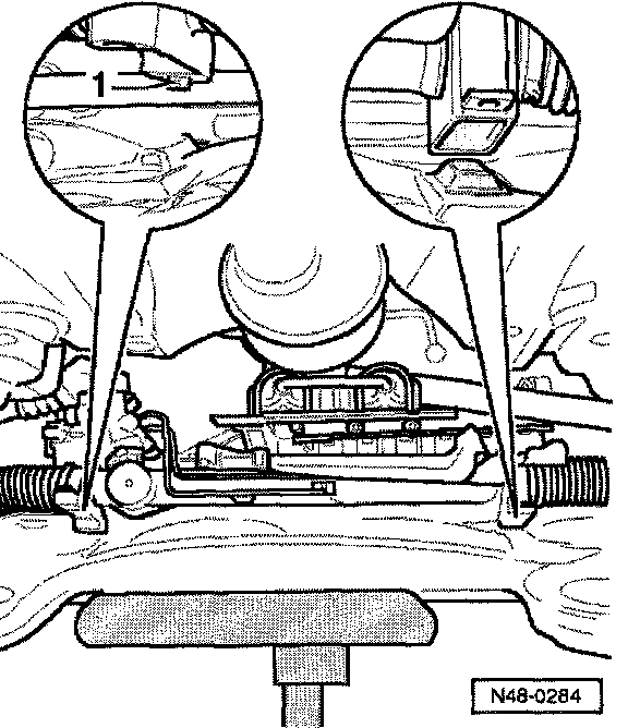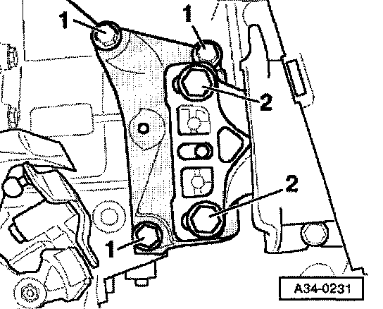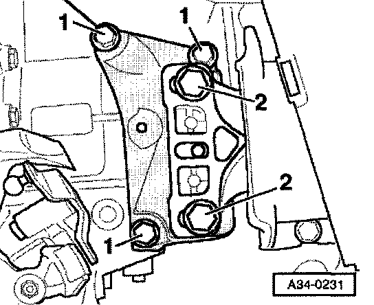 CAUTION!: Make sure that the transmission support and the transmission console are absolutely parallel before fitting the securing bolts. If they are not parallel, the thread will be damaged. If necessary, lift the transmission up at the rear using trolley jack.