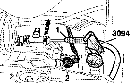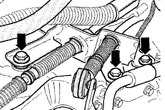 - Bolt Bowden cable mounting bracket onto transmission (arrows) (23 Nm).