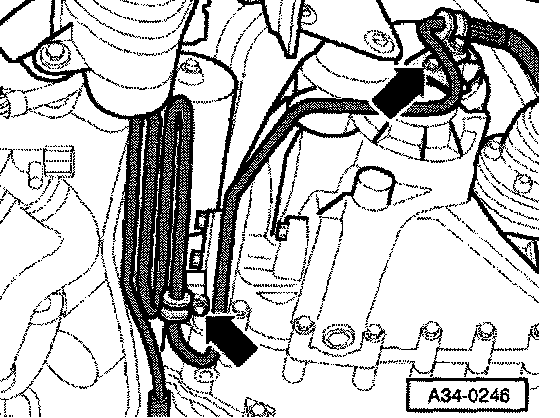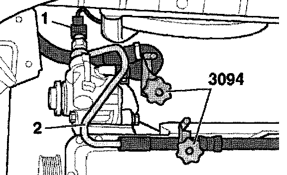 - Connect pressure pipe -2- to power steering pump, using new seals (38 Nm).