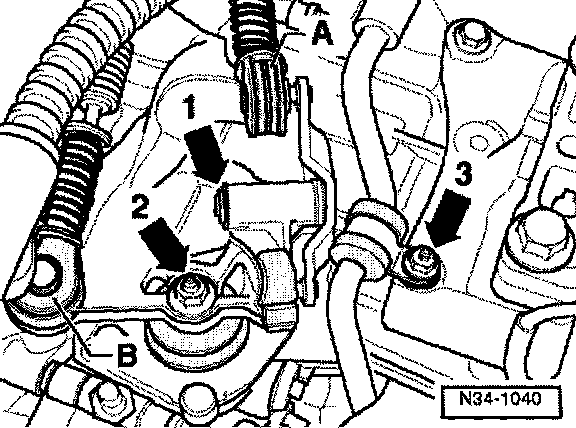 - Bolt sway brace to transmission - arrows B - (40 Nm + 90°).