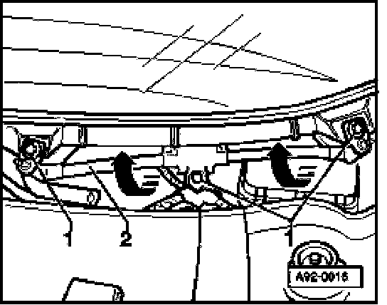 - Carefully tilt front of wiper frame -2- upward (arrows), then take whole assembly from plenum from the left.