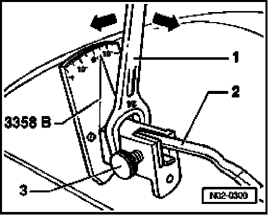 - Insert wiper arm -2- in wiper arm adjusting tool 3358 B and secure with locking screw -3-.