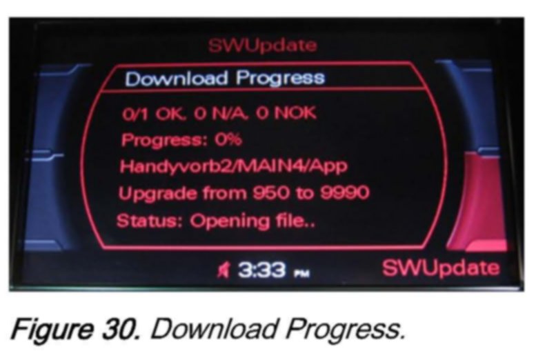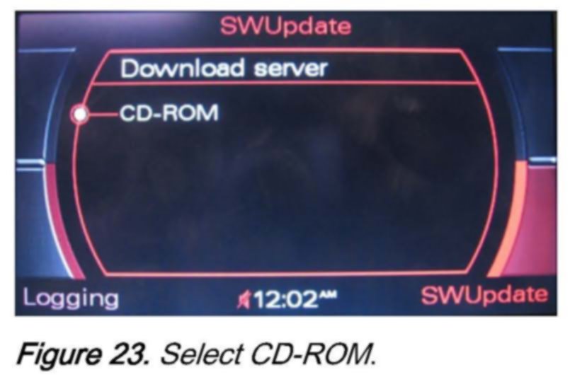 Firmware Update1. Insert CD #1 of CD bundle 4F0 998 961 in the single CD drive or in the first slot of the vehicle's CD changer.