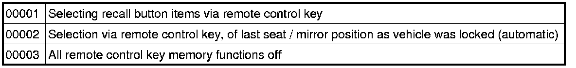 • Remote control key adaptation => [ Seat Control Element, Basic Setting ]