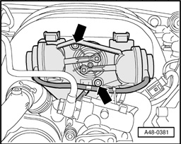 - Remove bolts (arrows) and remove vacuum diaphragm for intake manifold adjustment.