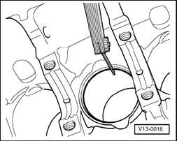 - Before removing, mark allocation of connecting rod and connecting rod bearing caps to each other and to cylinder using a color marker (arrow).