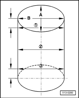 - Measure diagonally at 3 positions, horizontally -A- and lengthwise -B-.