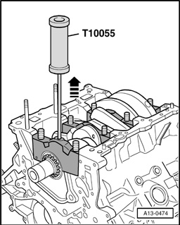 - Remove crankshaft bearing caps from cylinder block using T10055 extractor.