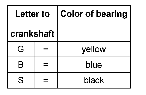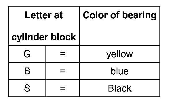Bearing shells with the correct thickness are allocated to the cylinder block in the factory. Colored dots on the bearing shells serve for identifying bearing shell thickness.