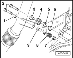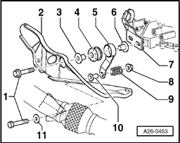 Fig. 6. Individual right mounting components for vehicles with automatic transmission 01V