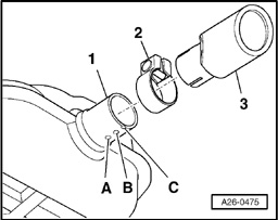 - Using VAG1523 saw, cut end pipe -1- at cutting point -C- at right angle.