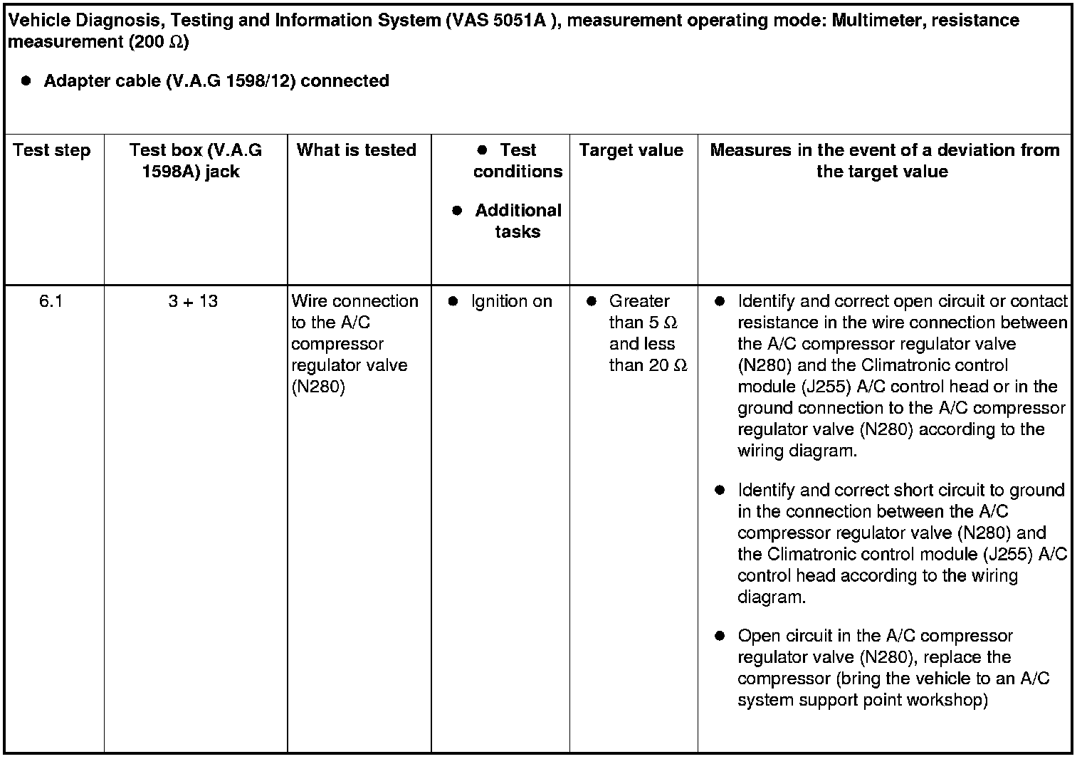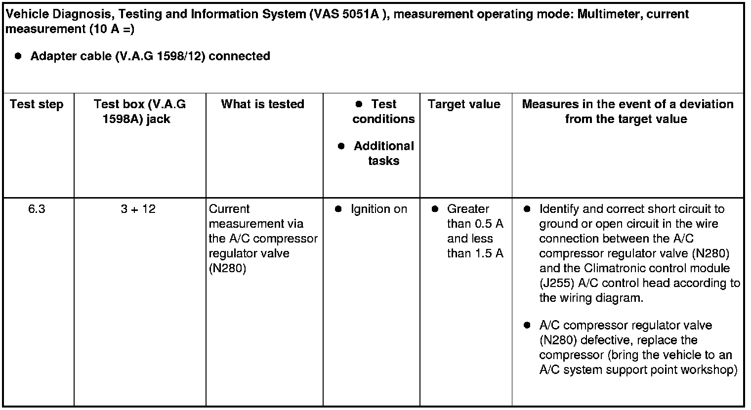 • The Climatronic control module (J255) A/C control head controls the current flowing over the A/C compressor regulator valve (N280) and thus controls the output of the compressor (read the measured value block, display group "001").