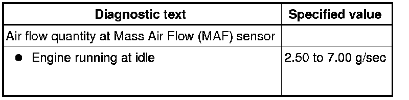 - Using the scan tool, Check the air flow quantity of the Mass Air Flow (MAF) Sensor (G70) at idle: