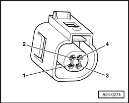 - Disconnect harness connector -2- at Engine Coolant Temperature (ECT) Sensor -G2-/- G62-.