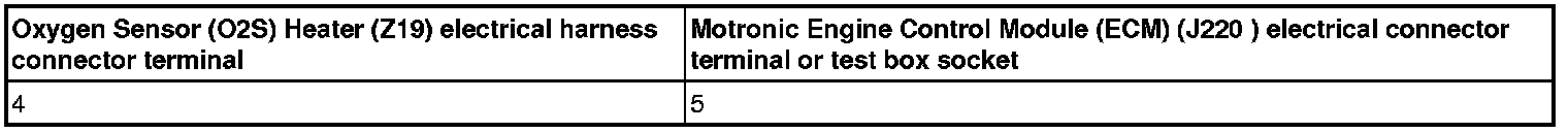 - Using a multimeter, check the Heated Oxygen Sensor (HO2S) electrical harness connector to the Motronic Engine Control Module (ECM) (J220) electrical harness connector for resistance.