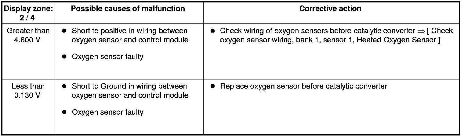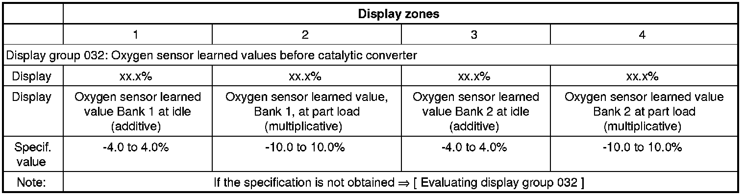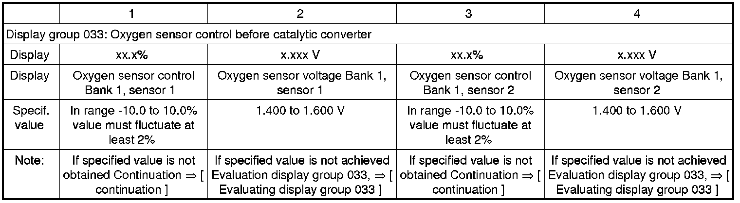 - Check oxygen sensor heating before catalytic converter. Refer to => [ Oxygen Sensors before Catalytic Converter, Checking Heating ] Oxygen Sensors Before Catalytic Converter, Checking Heating.