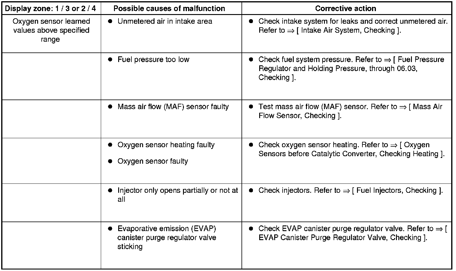 If the specified result is not achieved in display zones 1 or 3, or if the value does not fluctuate by at least 2%, even after the test drive: