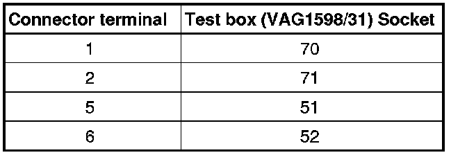 - Connect test box (VAG1598/31) to wiring harness for engine control module; engine control module must not be connected. Refer to => [ Wiring and Component Check with Test Box VAG 1598/31 ] Wiring and Component Check With Test Box VAG 1598/31.