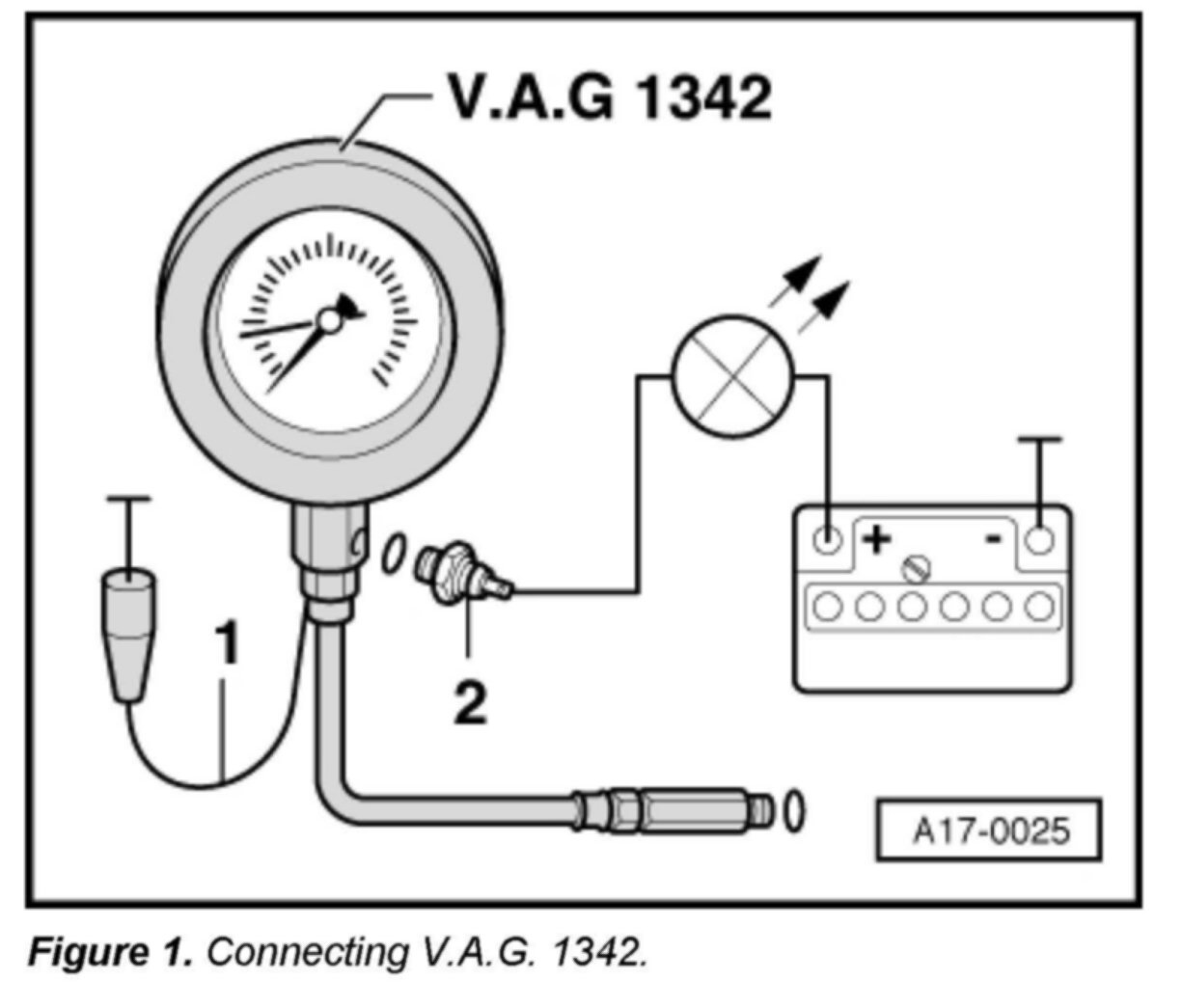 c. Screw oil pressure switch (Figure 1, Point 2) into VAG1342.