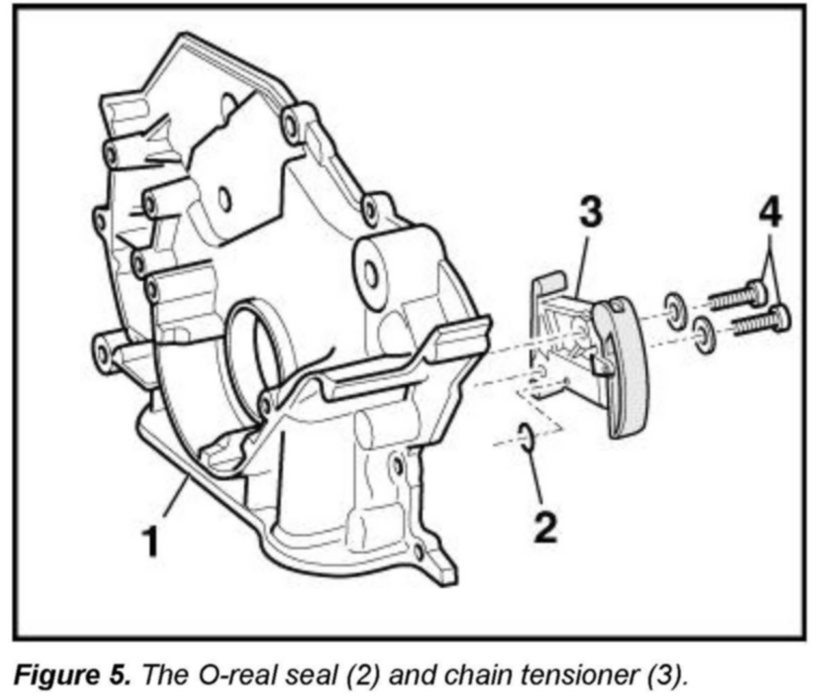 10. Replace O-ring seal (Figure 5, Point 2) on the chain tensioner (Figure 5, Point 3). See Repair Manual >> Engine >> Engine Mechanical >> 17 Lubrication >> Removal+Installation >> Oil pump Drive or Chain Tensioner.