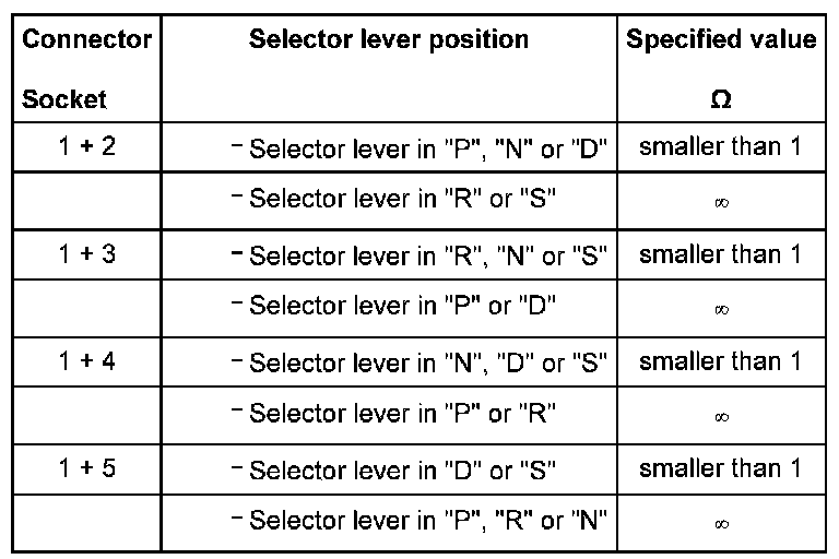 Multi-Function Transmission Range (TR) Switch -F125- (Automatic Transmission 01V), Checking