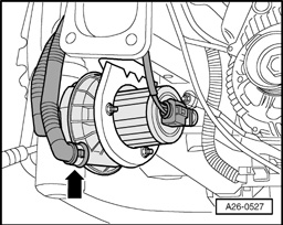 - Disconnect pressure hose (arrow) at Secondary Air Injection (AIR) pump motor and blow air in with light pressure (do not use pressurized air).