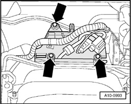 - Remove bolts for holding plate for solenoid valves (arrows).