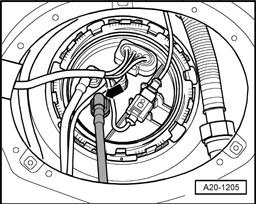 - Disconnect fuel return line (arrow) by pressing release button.